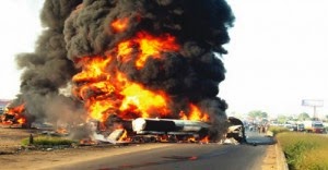 leading to serious traffic congestion along the axis. A tanker loaded with petrol drove against the traffic